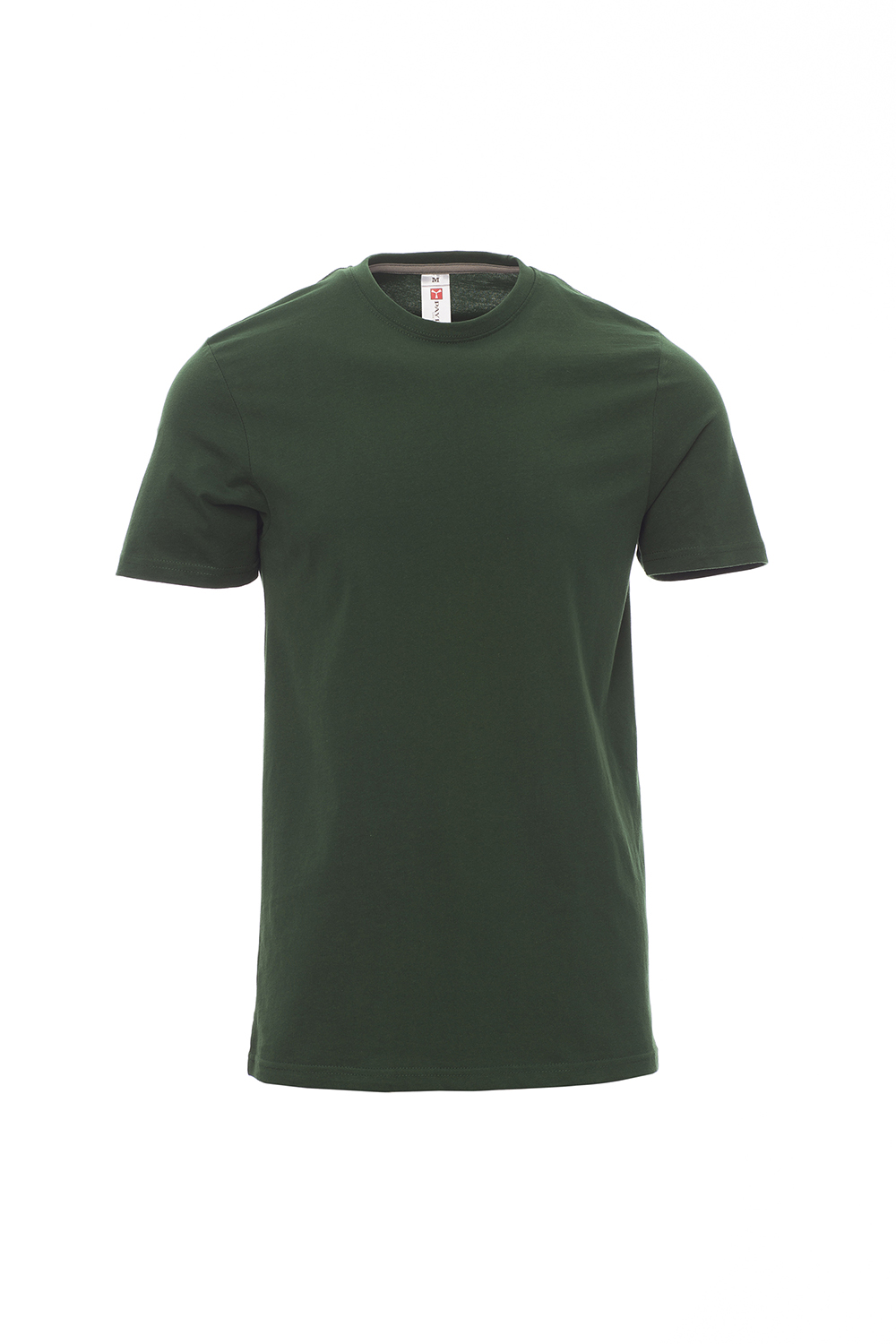 Herren-T-Shirt mit Rundhalsausschnitt, kurzärmelig, Feinripp-Kragen 1,5 cm aus Spandex-Mischgewebe mit Kappnaht an der Vorderseite, Verstärkungsband in Kontrastfarbe von Schulter zu Schulter, das im Kragen sichtbar ist, Stretchnähten, Seitennaht