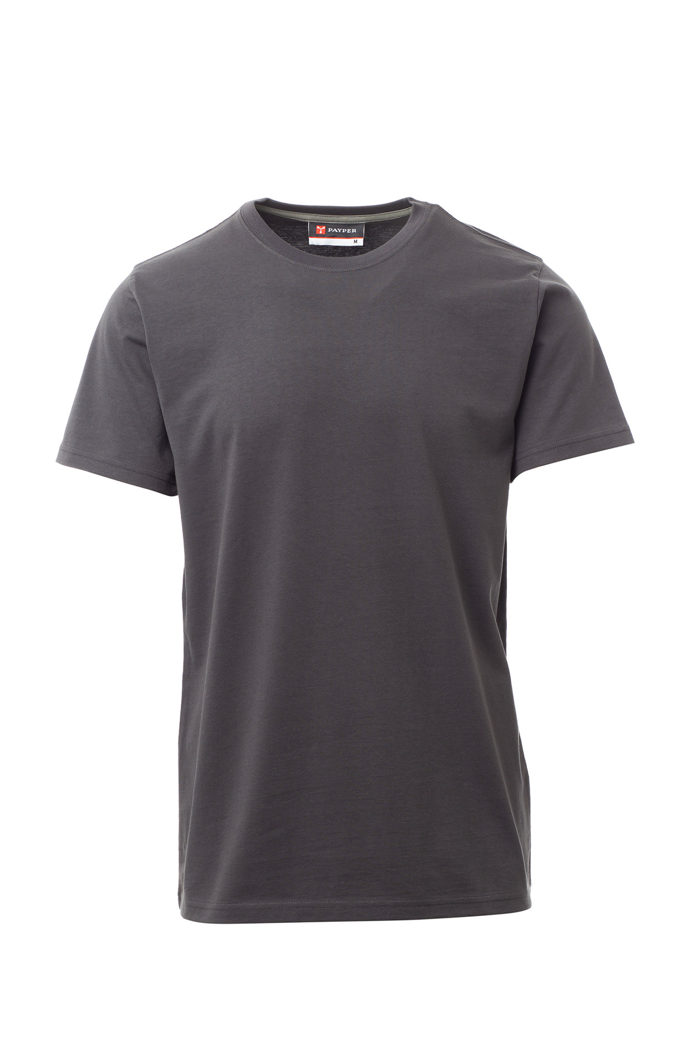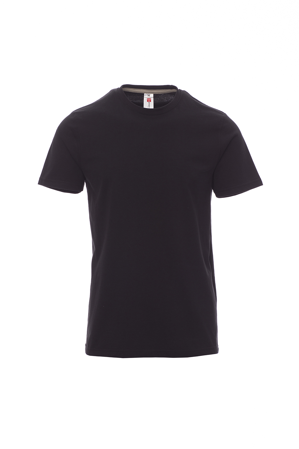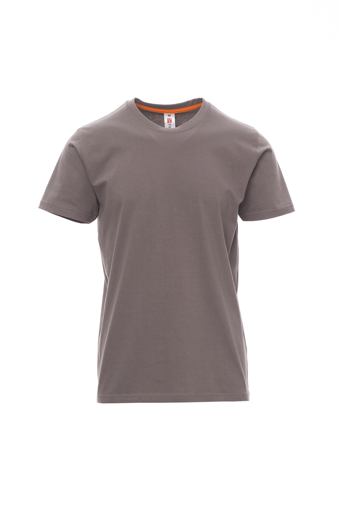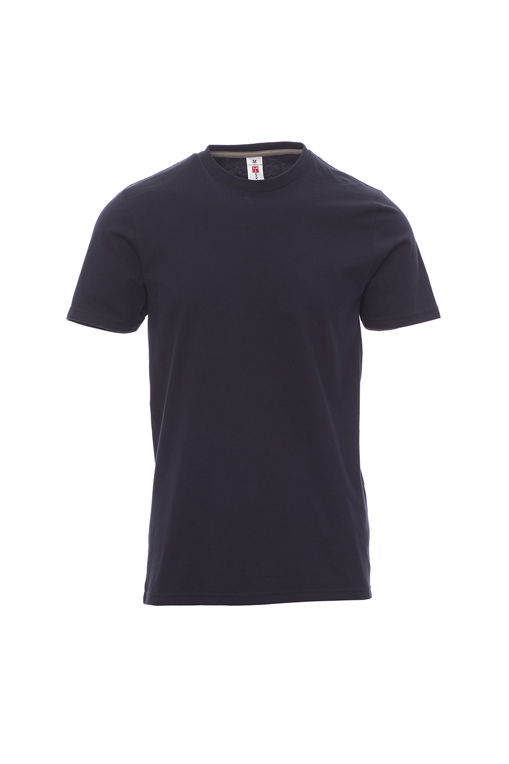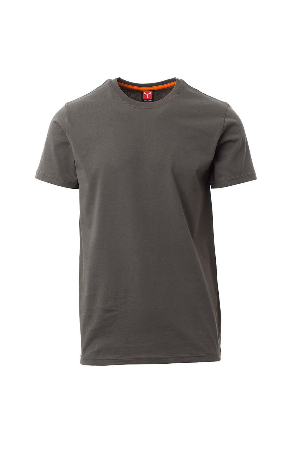 Herren-T-Shirt mit Rundhalsausschnitt, kurzärmelig, Feinripp-Kragen 1,5 cm aus Spandex-Mischgewebe mit Kappnaht an der Vorderseite, Verstärkungsband in Kontrastfarbe von Schulter zu Schulter, das im Kragen sichtbar ist, Stretchnähten, Seitennaht